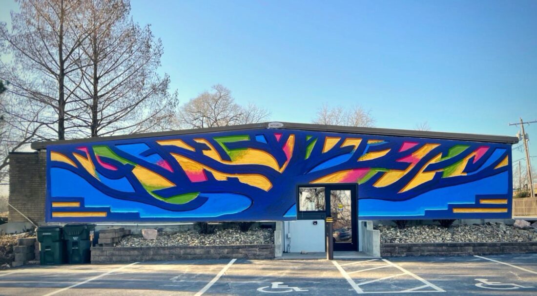 Lara Giordano, the director of LJCC, said the vivid design depicts an elder tree with “colorful facets within its branches.” It’s meant to suggest the congregation’s Jewish roots and its roots in Lawrence; the LJCC has been around since 1954, Giordano said.