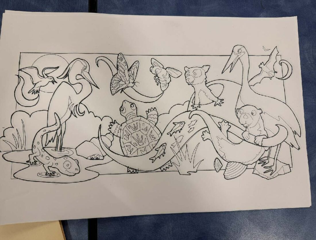The scout troop raised over $2,000 to pay for supplies, and Kizer Cummings has agreed to provide touch-ups throughout the mural’s life. To develop the mural design, they worked with Rick Wright, arts director of the youth art nonprofit Van Go, and they got inspiration from going to the Baker Wetlands, taking photos of wildlife and making drawings.