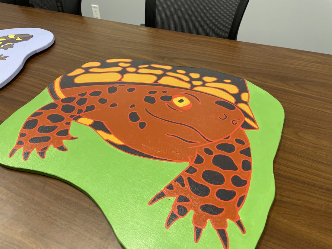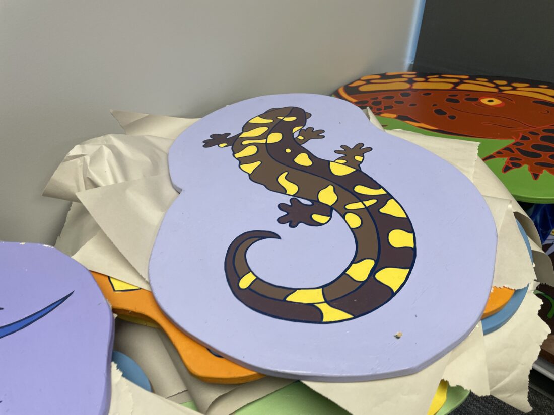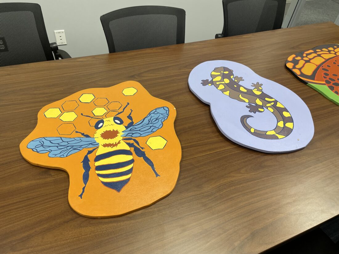 There are 32 of them, each depicting a different animal or plant – a box turtle, a salamander with bright yellow spots, a fuzzy bee, a sunflower.