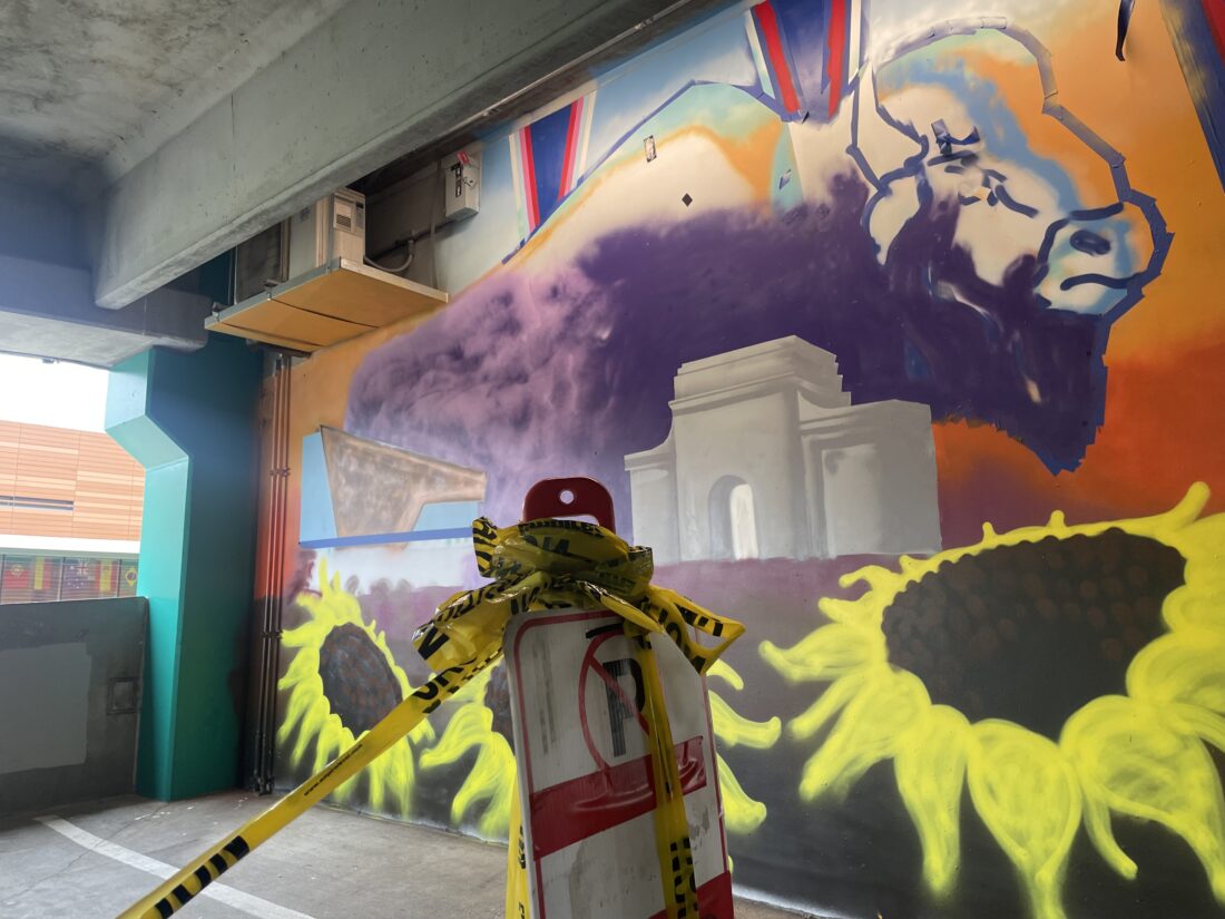 Harrell sees art in parking garages as an investment, because studies have shown that public art deters graffiti. The city spends about $5,000 each year to remove crude graffiti from its parking structures, he said, and since Cliff’s mural was painted, “we’ve already seen a pretty drastic reduction in that.”