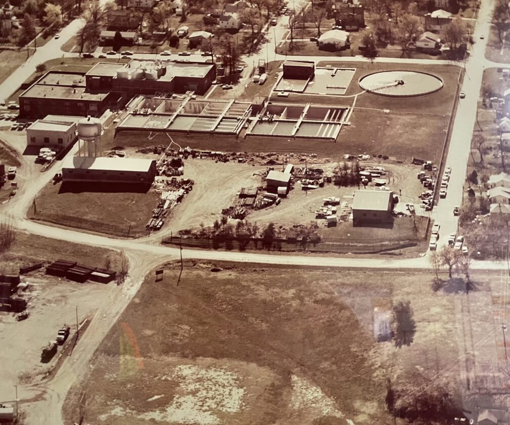 This historic photo in the Kansas River Wastewater Treatment Plant shows an old warehouse at center left. Now, there’s another warehouse (that’s also decades old) in the space right next to it.