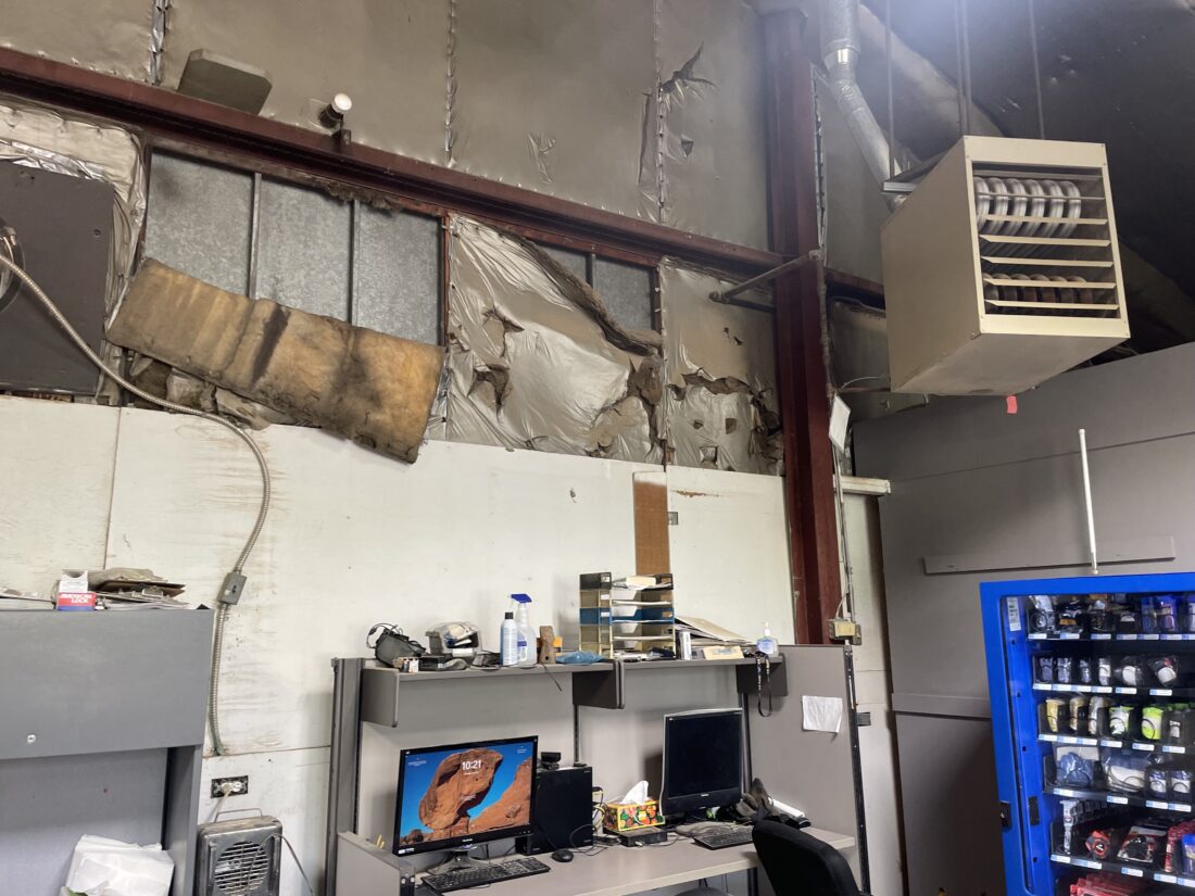 Old insulation is in poor condition in this utilities building for the city’s MSO department.