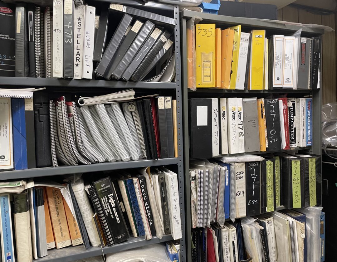 Shelves of manuals are pictured in the city’s central maintenance garage on Tuesday, April 14, 2026.