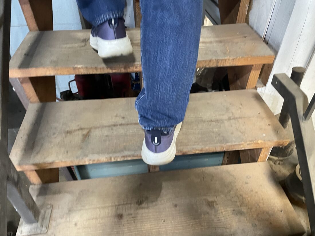 Wooden steps lead up to the landing above the central maintenance garage’s shop floor on Tuesday, April 14, 2026.