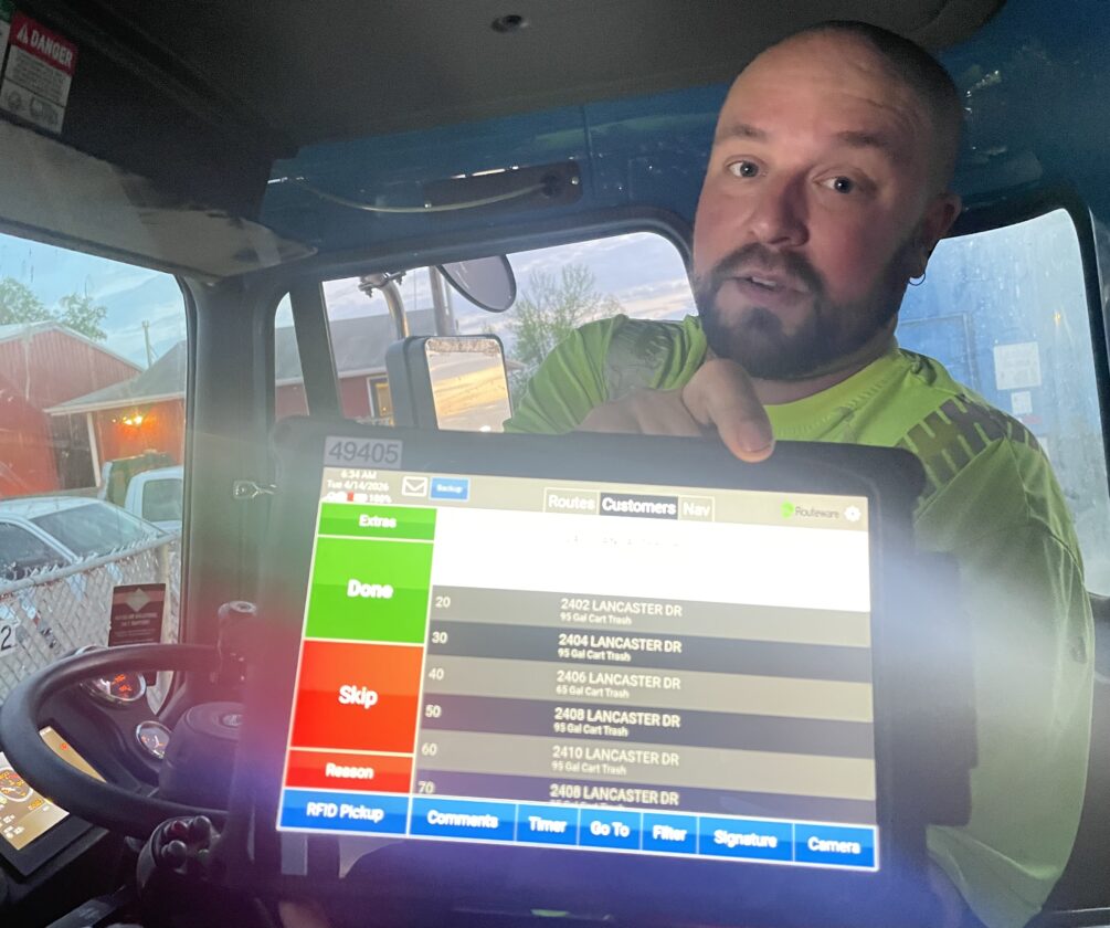 “We have cameras on the truck, and they’ll actually take a picture, a timestamped picture, and then that comes back into the software,” he said. “And when somebody calls in, we can look up that address and say, ‘Oh, no, I have a picture – and video – at 7:23 this morning when our truck was there, and there was no cart there.”