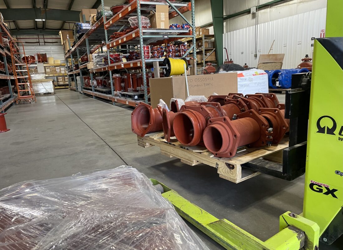 A warehouse full of “several” water infrastructure parts is pictured on Tuesday, April 14, 2026.