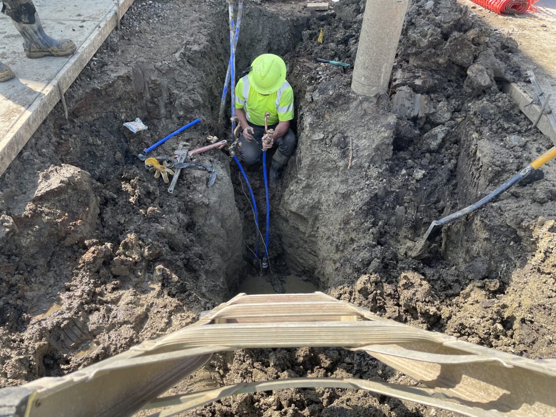 A city MSO worker installs water services for a home in western Lawrence on Tuesday, April 14, 2026.