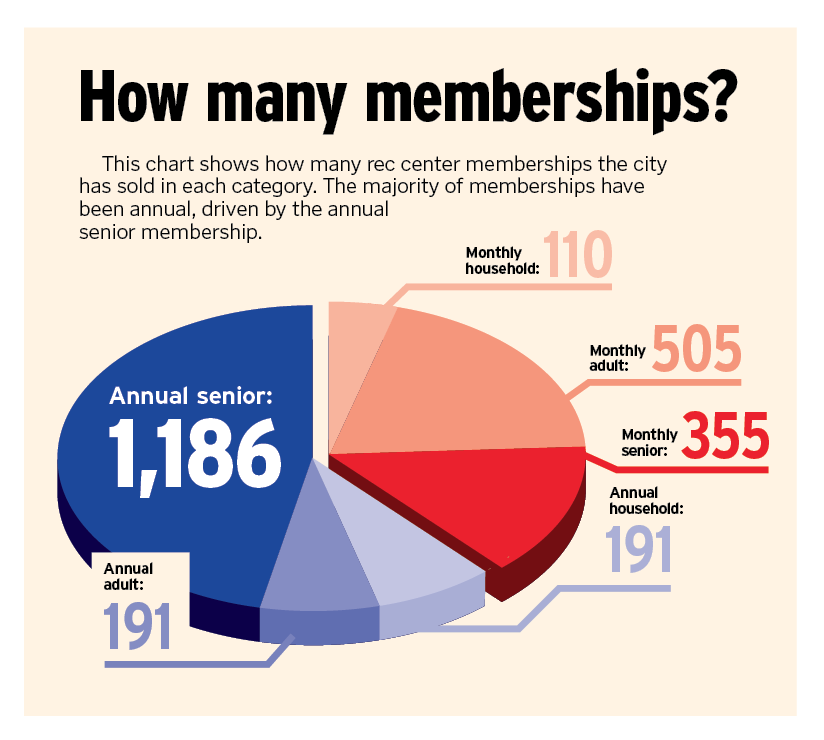 In the first month, more than 1,180 annual senior memberships and more than 350 monthly senior memberships were sold. They accounted for more than $100,000 of the department’s revenue. Annual adult and household memberships, meanwhile, were at 191 each, and monthly adult and monthly household memberships were at 505 and 110, respectively.