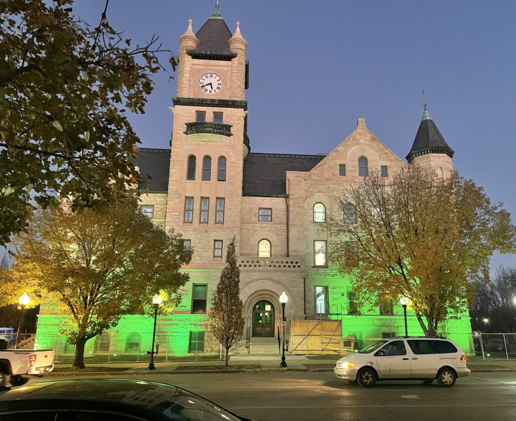Douglas County’s historic courthouse lights up in green to honor veterans