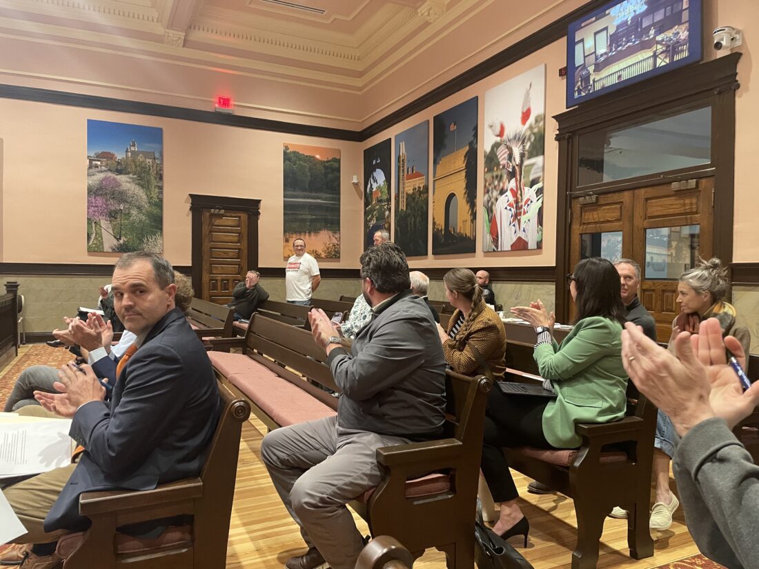 Douglas County Commission meeting attendees applaud as veterans stand to be recognized at the Douglas County courthouse on Wednesday, Nov. 5, 2025.