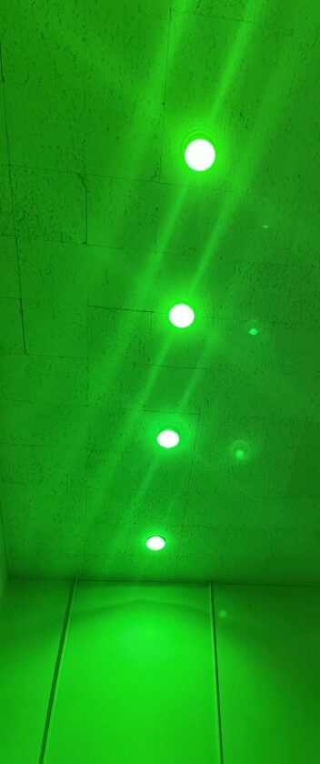 A row of green lights in the entryway of the Douglas County courthouse on Wednesday, Nov. 5, 2025, for Operation Green Light for Veterans.