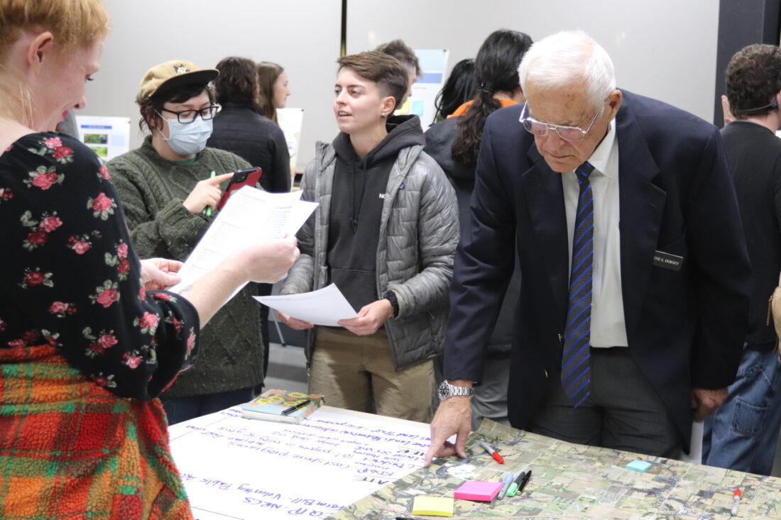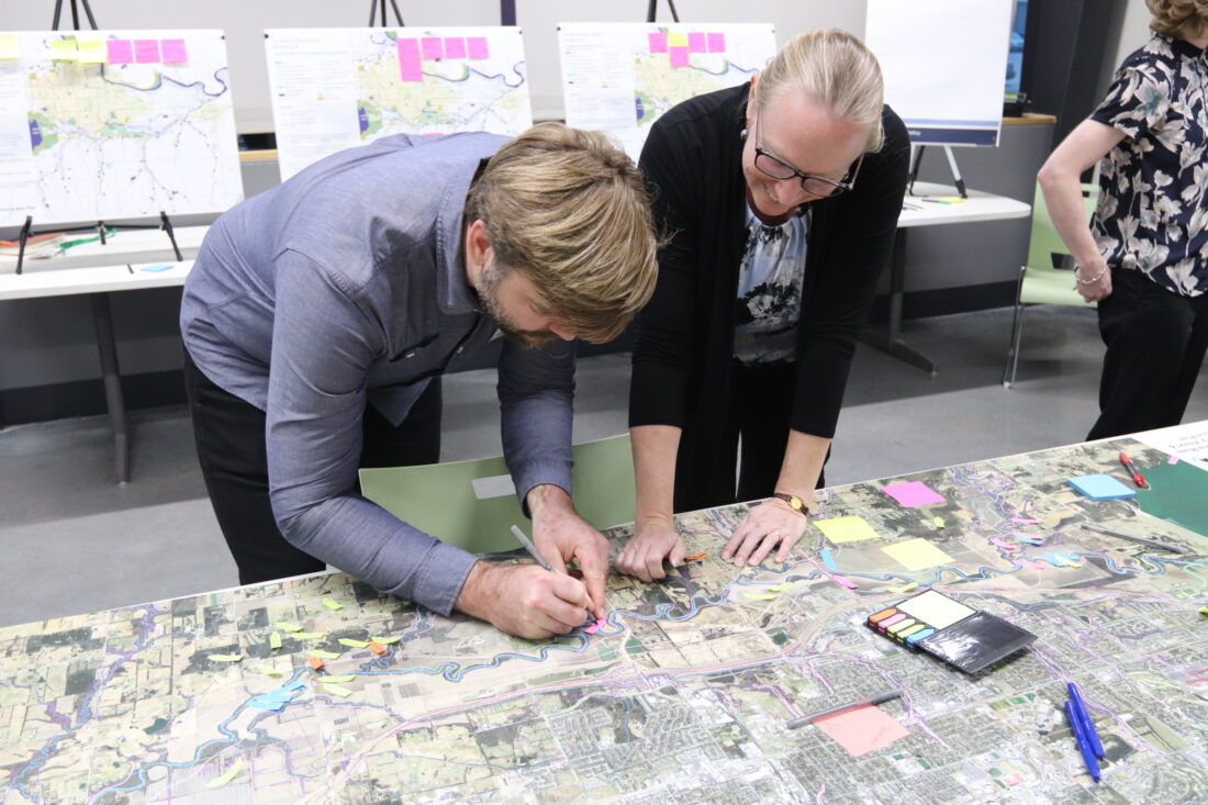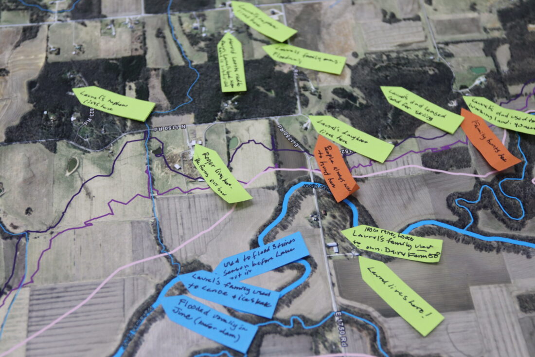 Community members were invited to add their own meaningful places and stories along the Wakarusa River on a map at the open house on Thursday, Nov. 20, 2025.