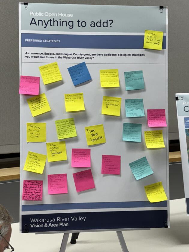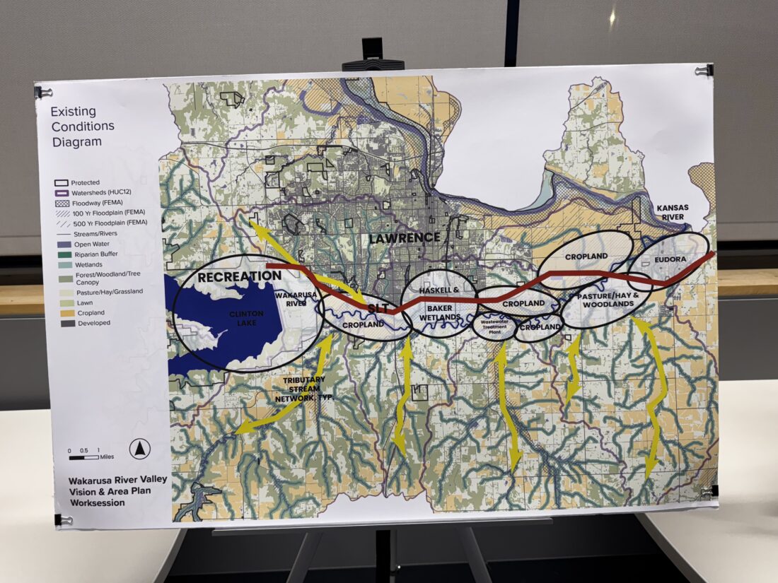On Thursday, Douglas County staff hosted an open house for community members to provide more input on what the future of the Wakarusa River Corridor should look like. For several months, the county’s sustainability team and planning firms, Biohabitats and Hoxie Collective LLC, have been working on The Wakarusa Corridor Vision & Area Plan. It’s a long-term planning project to guide future development and conservation in the Wakarusa River corridor, balancing growth with environmental protection.
