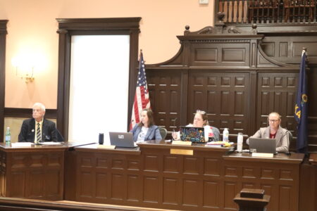 From left to right, Terelle Mock, an attorney representing Douglas County; Deputy County Administrator Sean Pederson; County Administrator Sarah Plinsky; and Assistant County Administrator Jill Jolicoeur are pictured on Wednesday, March 11, 2026.