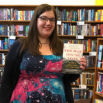 Local author Rachel McCarthy James stands in The Raven Book Store with the paperback version of her book "The Man From The Train."