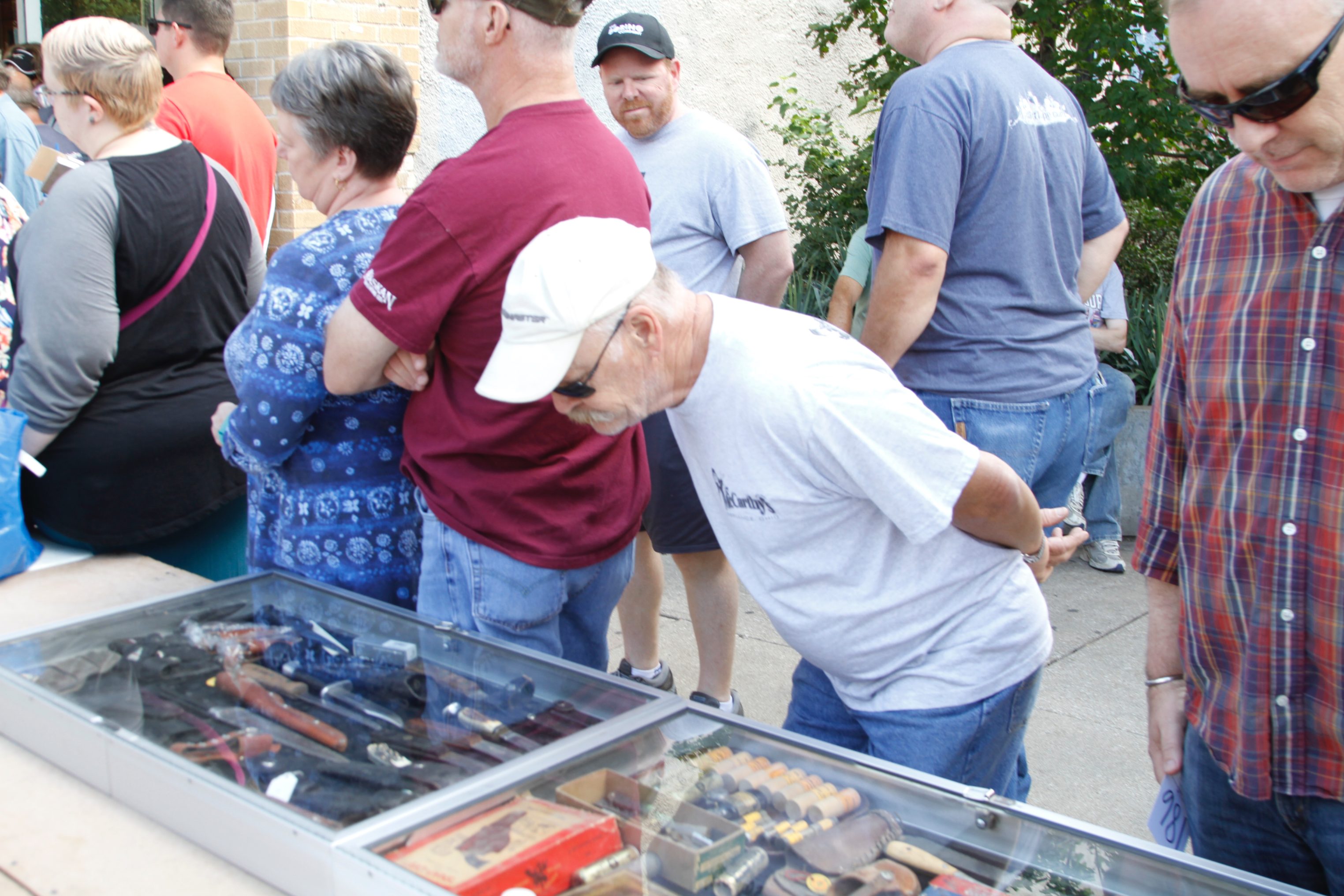 Mike LaBuda, of Baldwin City, takes a close look at a display case filled with knives Sunday, Sept. 9, 2018 at the auction of inventory from the ground floor of Ernst & Son Hardware, 826 Massachusetts St. The store closed in June after 113 years open.