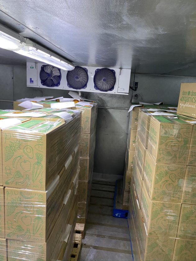 Many boxes of locally produced groceries are stored before delivery to Lawrence-area residents. Sunflower Provisions began the new delivery service as a response to the coronavirus pandemic.