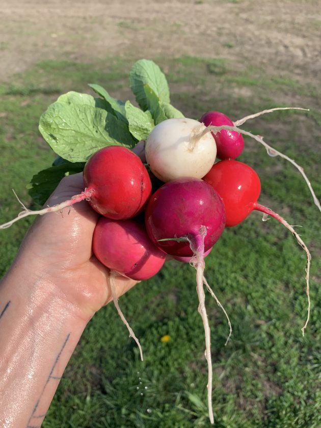 These locally grown radishes are some of the fresh produce available through the Sunflower Provisions online grocery market. Scott Thellman, owner of Juniper Hill Farms, said the new business was started to help sell the produce while local farmers’ markets are closed for the coronavirus pandemic.