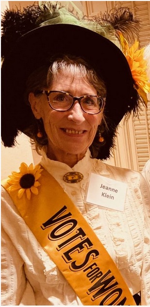 Jeanne Klein is pictured in a suffragette costume she plans to wear when portraying Genevieve Chalkley on Aug. 26 for an event with the Watkins Museum.