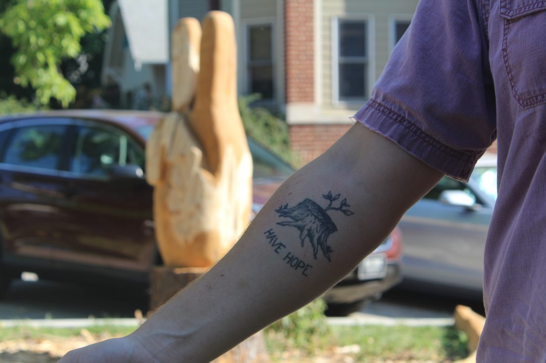“I would call myself a tree-hugger,” Mantyla said. He has a tattoo on his forearm of a tree stump with a plant sprouting out of it. Underneath are the words, “Have hope.”