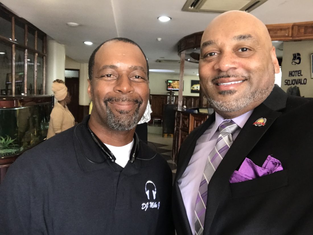 Michael Freeland Jr., left, is pictured with Ruben West in Kampala, Uganda, in Sept. 2019.