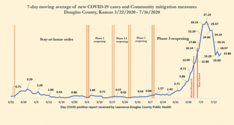 The Kansas Department of Health and Environment’s online map noted that 9,384 Douglas County residents had been tested for the disease so far. The county’s testing rate per 1,000 people was 76.8.