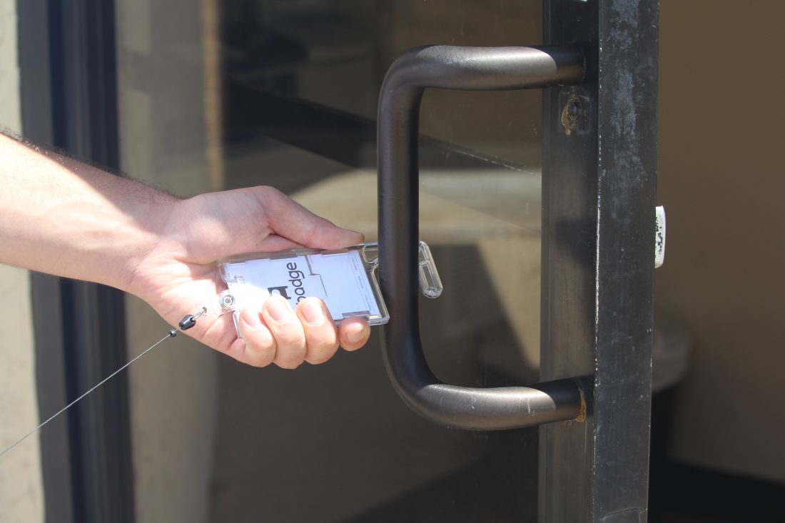 For employees like Crowder, who have to swipe or scan their ID badge before entering their offices, the AllBadge allows that same ID holder to be used to open the office door.