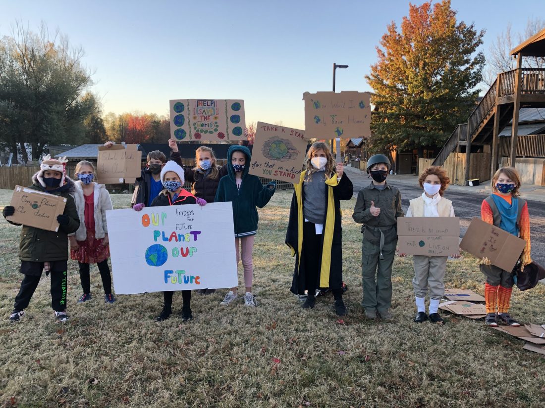 Dylan Tenbrink, holding the white “Our planet our future” sign, is pictured with her classmates prior to the start of school on Oct. 30.