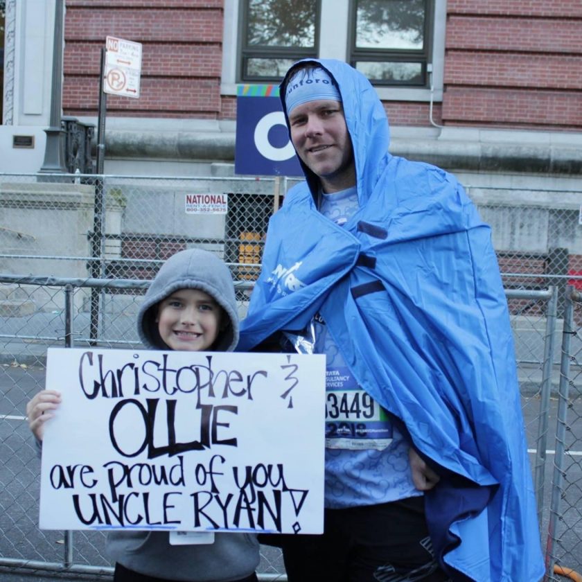 Ryan Ortiz, right, is pictured next to his nephew Christopher Ortiz after finishing the New York City marathon in November of 2018.