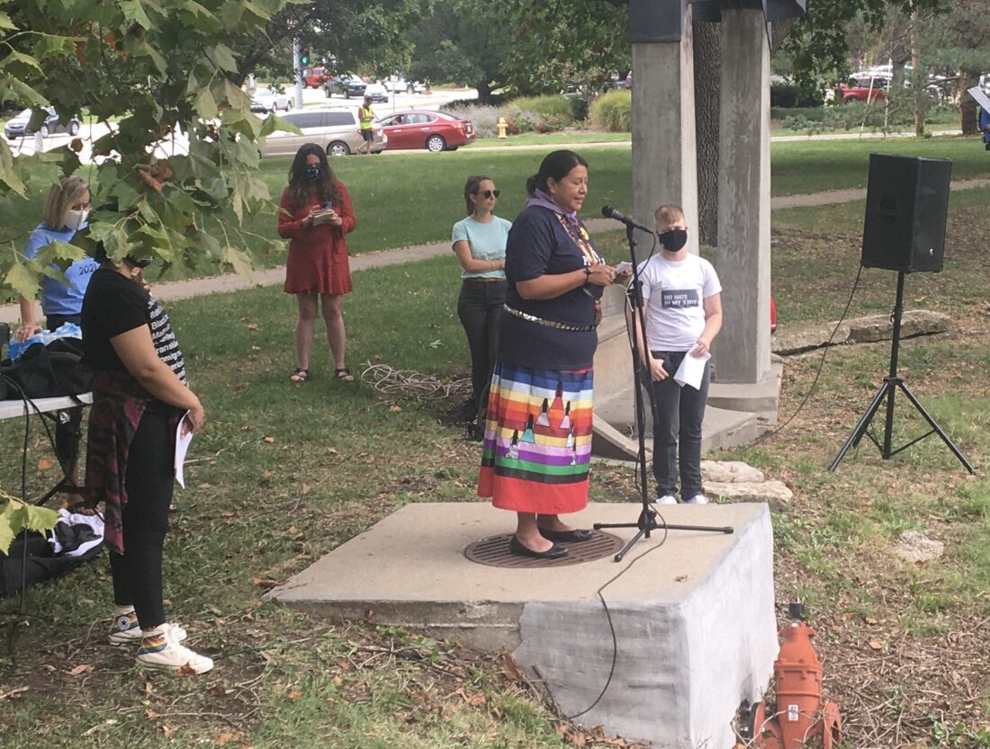 State Sen. Marci Francisco speaks at the Lawrence Women’s March Saturday, Oct. 2, 2021, at Watson Park.