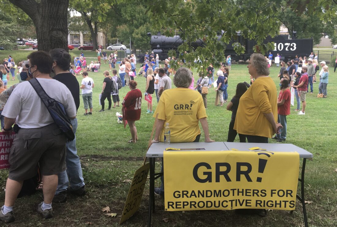 Grandmothers for Reproductive Rights attend the Lawrence Women’s March Saturday, Oct. 2, 2021, at Watson Park.