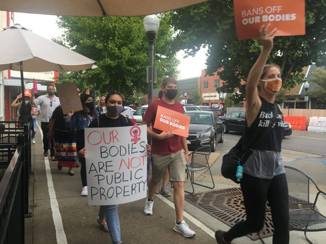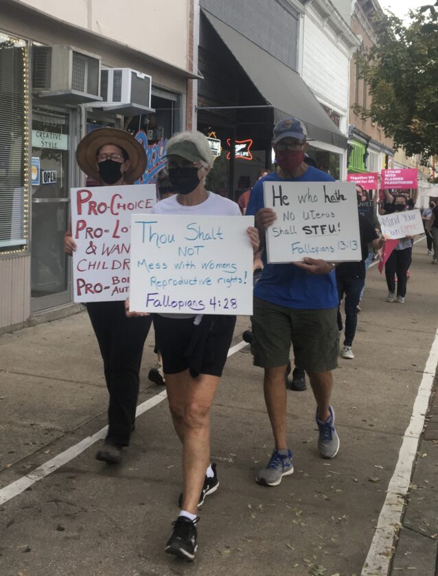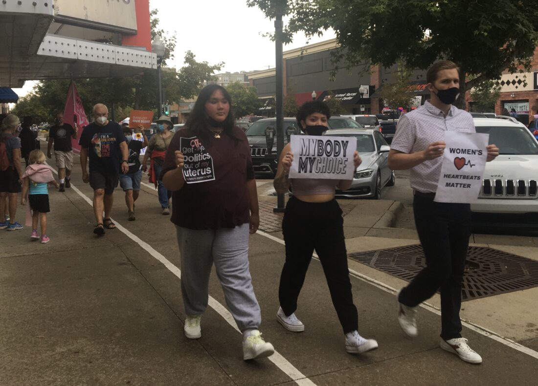 Saturday’s march was sponsored by Planned Parenthood Great Plains, Douglas County Democrats, ACLU KU, Kansas Abortion Fund and the Lawrence Juice.