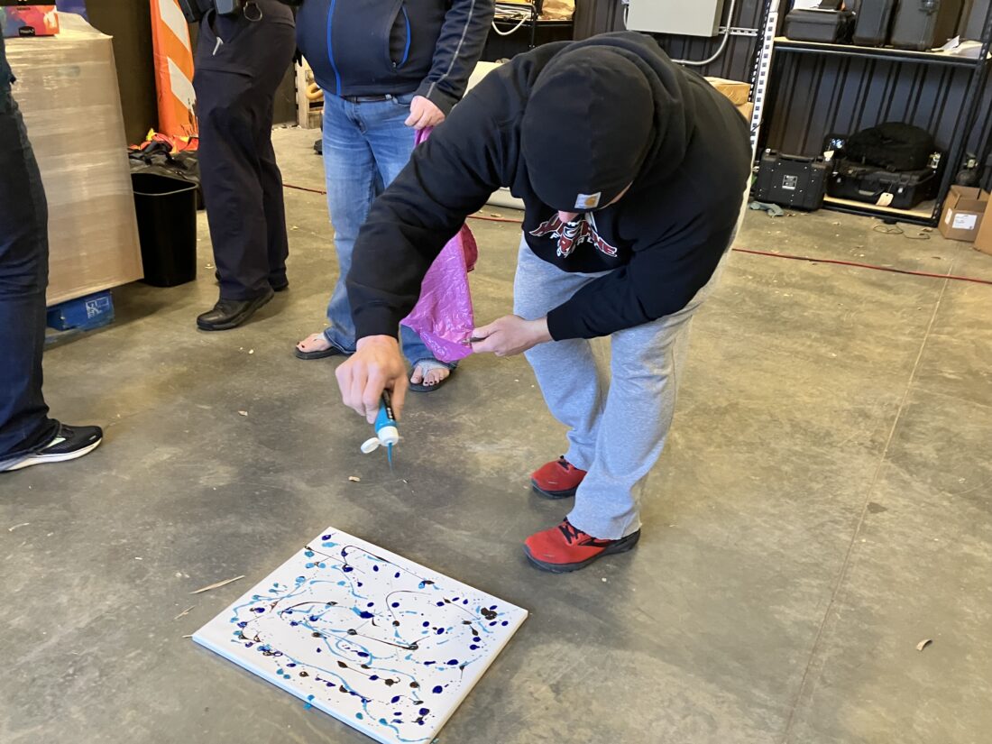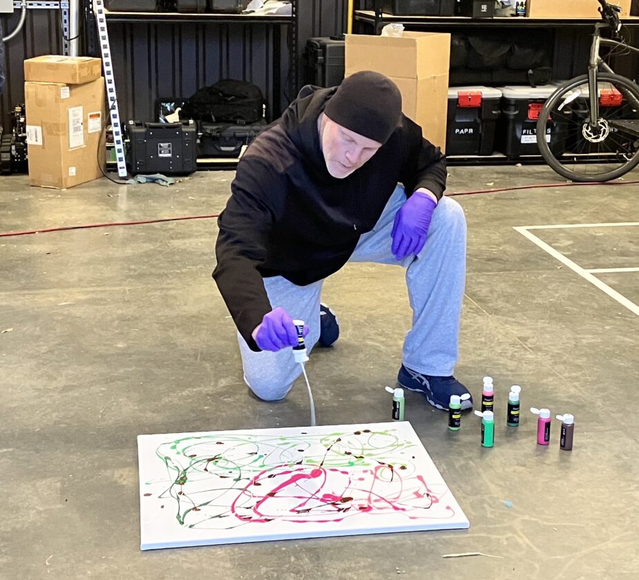 “Every K9 is completely different,” she asserted, with the confidence of an art critic. “We’ve had K9s run off with the canvas like it’s a Frisbee … Some will roll on it, some will toss it in the air, some will just look at it like it’s on fire.”