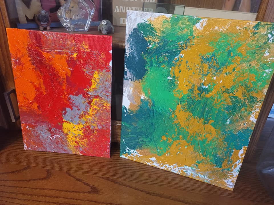 Some paintings created by police dogs in Kansas for Friends of the K9 Vest Midwest. The paintings created by the Lawrence dogs should be similar to these, although they were not unveiled Sunday, Dec. 11, 2022, at Lawrence Police Headquarters.