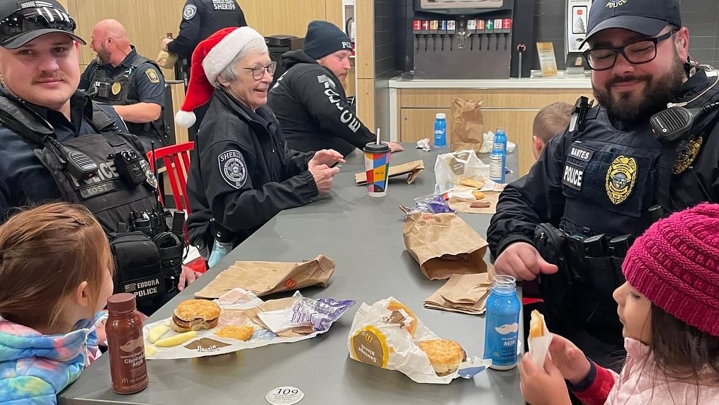 Douglas County law enforcement eat breakfast with kids from the Elizabeth B. Ballard Community Center holiday shopping at McDonald’s, 1309 W. Sixth St., on Dec. 1, 2023.