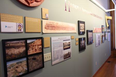Pate said the exhibit details Haskell’s history starting in 1884, when the school was first founded as a residential boarding school for Native American children. The school remained a boarding school until 1970, known for most of that period as the Haskell Institute, and became a junior college for a brief period from 1970 to 1993. That’s when the university adopted its current name and began offering four-year degree programs in the years to follow.
