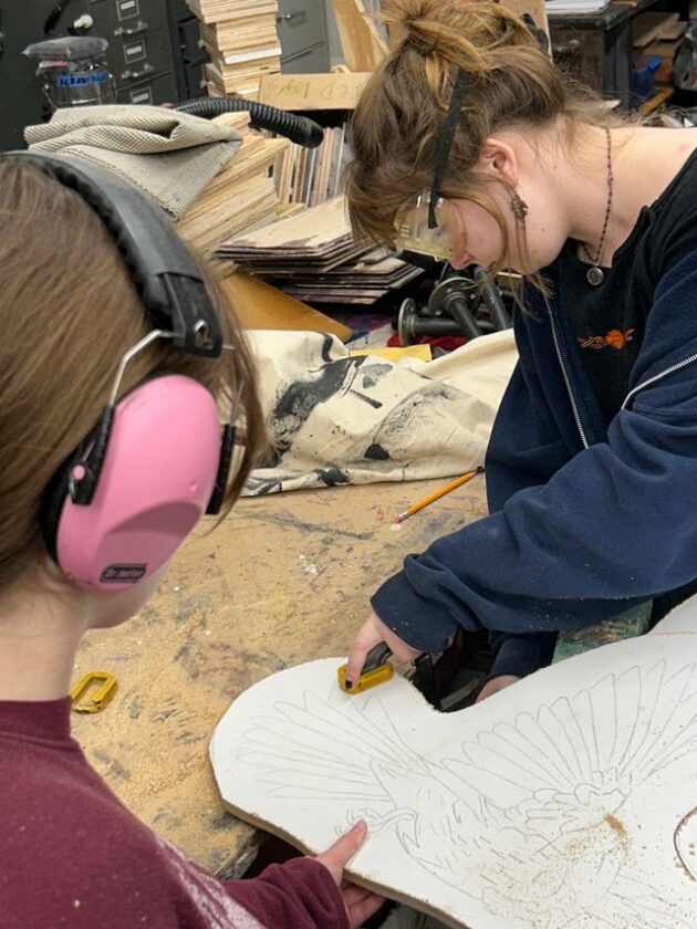 The art project will showcase Kansas’ native flora and fauna through 32 panels, each to be mounted on a pillar above a parking spot inside the garage. So far, the students have individually cut out the panels and sketched the animals and plants that will appear on them. Hang12 mentor Alicia Kelly said the students are preparing to begin painting this week.