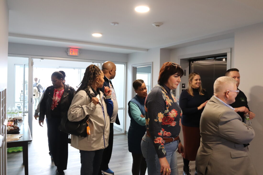 People attending the ribbon cutting ceremony and tours of Delmar Place on Thursday, Nov. 6, 2025.