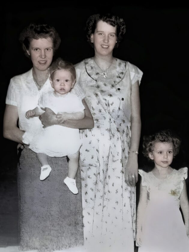 Vivian Self, left, is pictured holdingThelma Simons alongside Vivian’s sister Mary and her daughter Shirley.