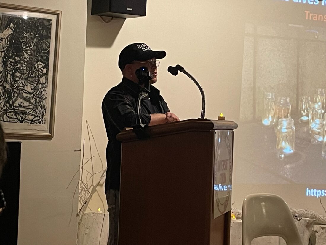 D.C. Hiegert speaks at a Transgender Day of Remembrance event Thursday, Nov. 20, 2025, at Ecumenical Campus Ministries.