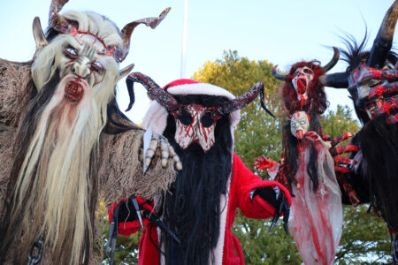 A gang of Krampuses participate in the Lawrence Zombie Walk on Oct. 17, 2024 in downtown Lawrence.