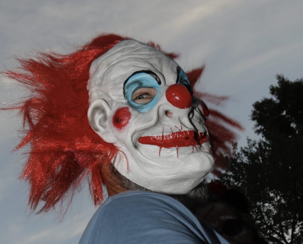 A zombie clown participates in the 18th Annual Lawrence Zombie Walk that took place Thursday, October 16, 2025 in Lawrence.