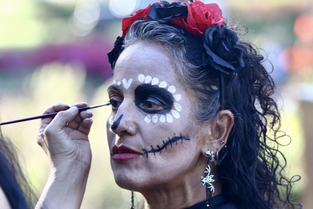 Shirley Petry, Lawrence, gets her face painted for the 18th Annual Lawrence Zombie Walk that took place Thursday, October 16, 2025 in Lawrence.