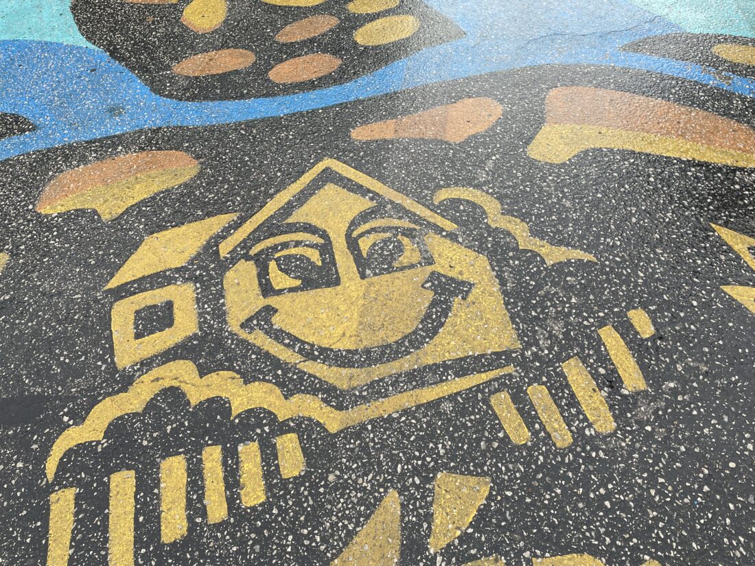 The Lawrence Community Nursery School’s logo is part of the street mural outside the school.