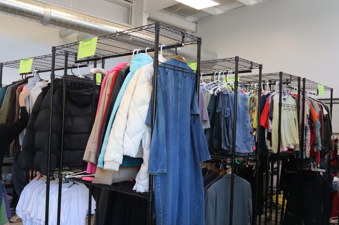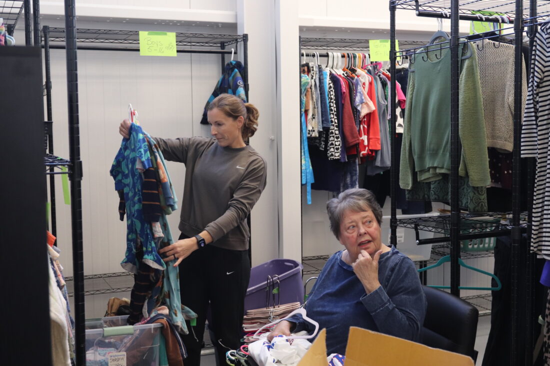 Volunteers organized clothes in the Ballard Center’s new building addition in preparation for its opening to the public on Monday, Nov. 3, 2025.