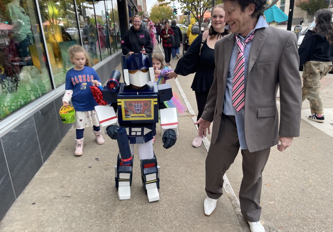 Theo trick-or-treats on Massachusetts Street in his Transformer costume on Friday, Oct. 31. 2025.