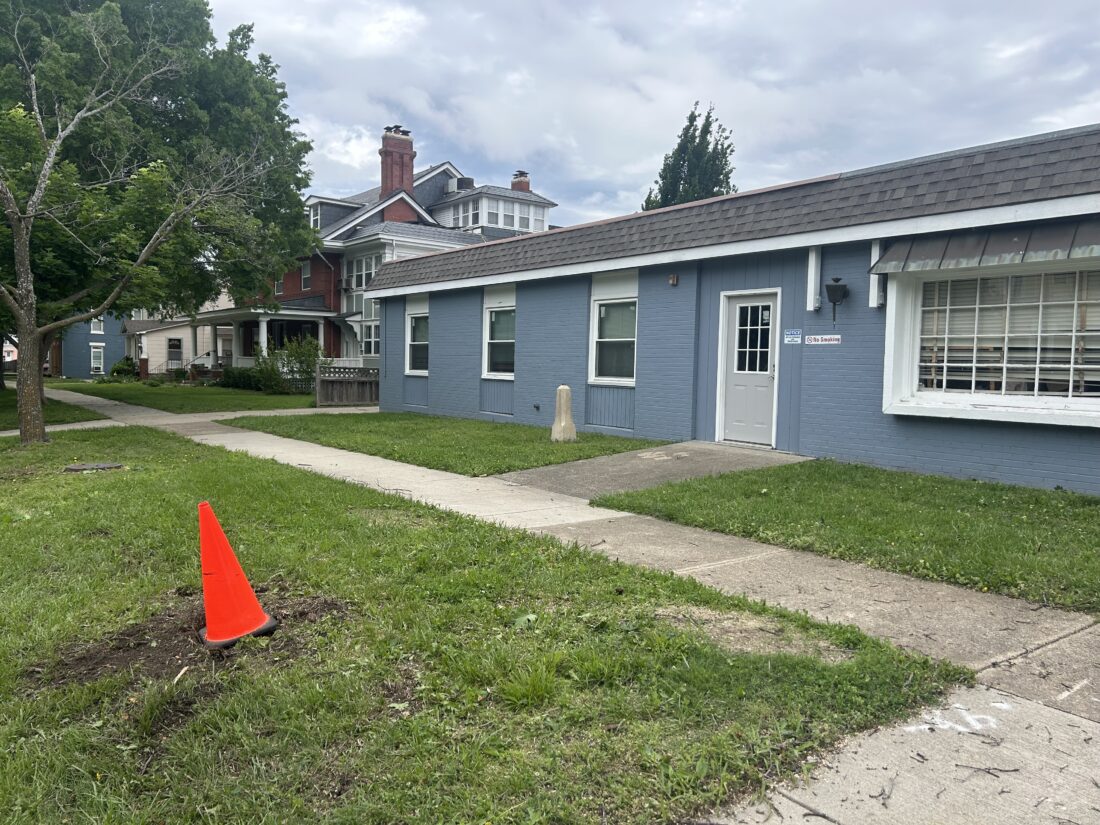 A cone outside the Homeless Resource Center, 944 Kentucky St., marks the location where a tree that fell on the building was removed.