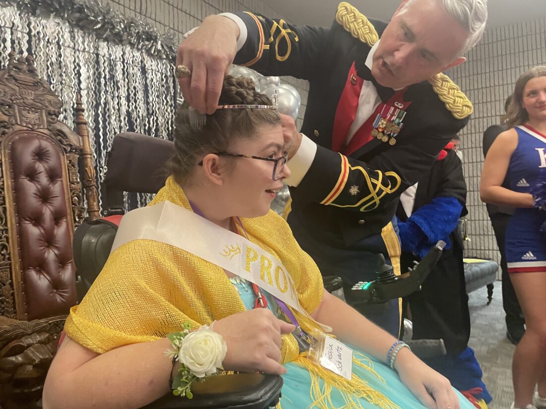 Jessica Schwartz smiles as she’s crowned prom royalty at 2026 Night to Shine on Friday, Feb. 13, 2026, at River City Church.