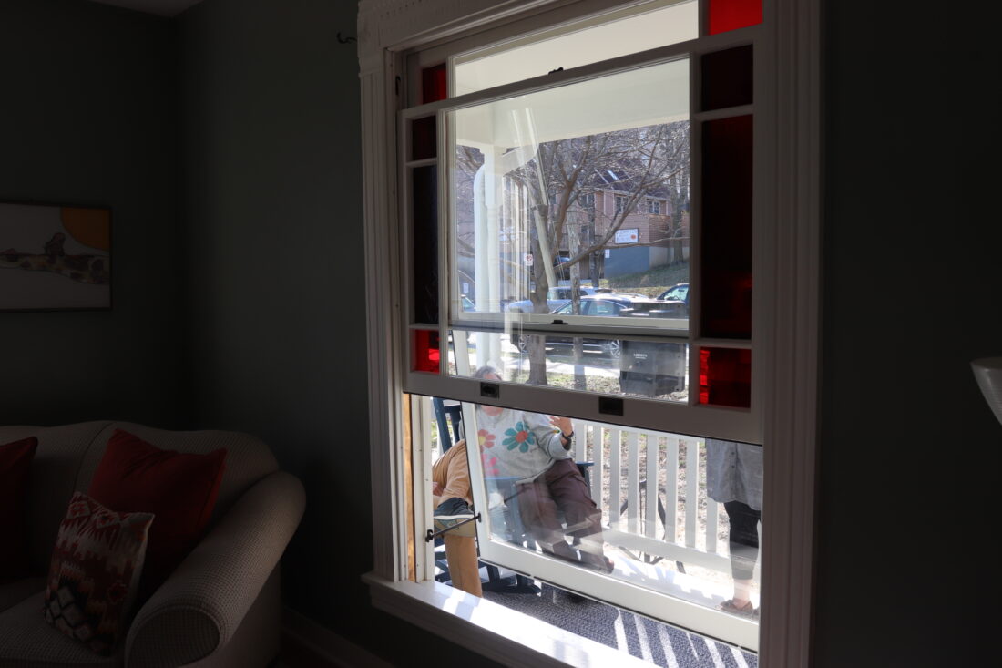 A stained glass window in the foyer of the house at 1128 Ohio Street.
