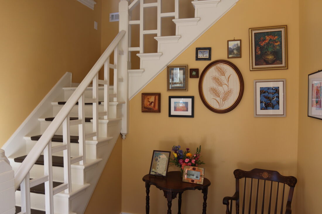 As for Lil’ Blue, the colors of the interior rooms were inspired by a bench dedicated to Sue Reid, County Commissioner Shannon Reid’s mother. The bench sits outside on the porch and was commissioned by Reid through Van Go’s Benchmark program, where youth ages 14 to 18 in Lawrence create benches for people and local organizations.